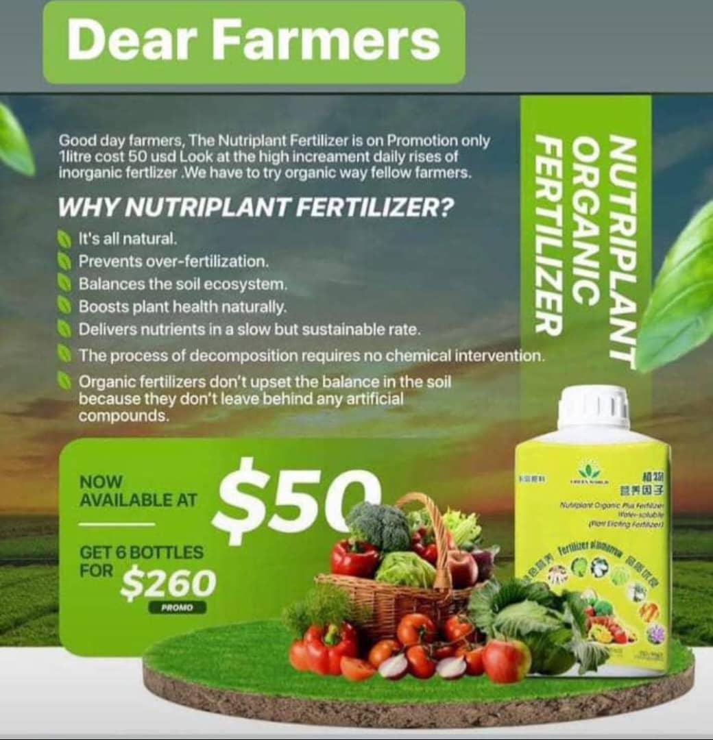 🌿 Nutriplant Organic Fertilizer: Your Best Option! Boost your yields with our organic liquid fertilizer! Mixed with water and sprayed using a knapsack, it's easy to use and effective. - 1L: $50 (covers 1-2 hectares). - 100mls: $11 (covers 1 acre ... Read More...